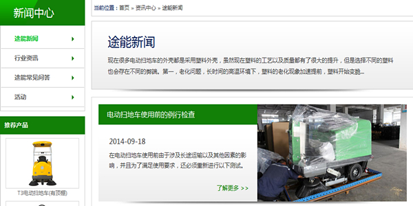 1.網(wǎng)站VI風(fēng)格詮釋: 要購買清潔設(shè)備的客戶一般都希望能用它打掃干凈、徹底,整個網(wǎng)站選用綠色和藍(lán)色(因?yàn)楣臼羌O(shè)備研產(chǎn)銷于一體,所以還采用了藍(lán)色,體現(xiàn)科技,表示產(chǎn)品質(zhì)量不錯),從客戶進(jìn)入網(wǎng)站的第一時間起,讓客戶潛在的知道途能的清潔設(shè)備節(jié)能環(huán)保的高科技產(chǎn)品。