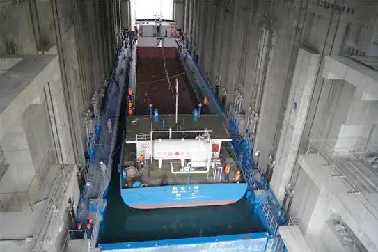 而在上述水電站過船設(shè)施工程建設(shè)中,也出現(xiàn)了中國船舶集團(tuán)旗下院所、船廠、配套企業(yè)等相關(guān)單位的身影。烏江構(gòu)皮灘水電站通航工程被視為貴州融入長江、通江達(dá)海的關(guān)鍵工程。該工程線路總長2306米,概算總投資29.51億元,設(shè)計(jì)通航標(biāo)準(zhǔn)為四級(jí)航道,最高通航水頭達(dá)199米,是世界上通航水頭最高、水位變幅最大的通航工程。