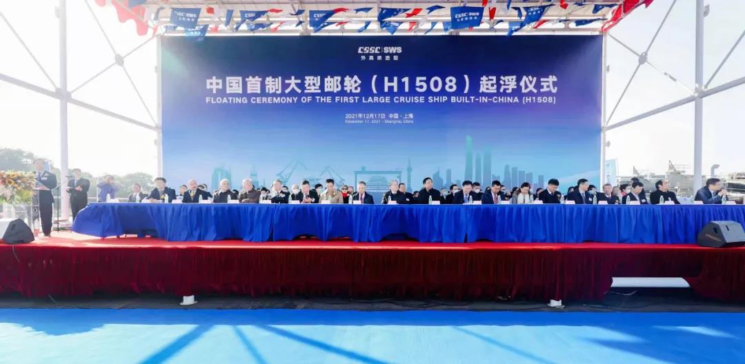 中國船舶集團總部有關部門和所屬相關企業(yè),以及上海海事局、上海港引航站、嘉年華集團、芬坎蒂尼集團、中國進出口銀行、中國建設銀行、中國銀行、中國人民財產保險股份有限公司、勞氏船級社、中國船級社、意大利船級社、上海建工集團等負責人出席起浮儀式。