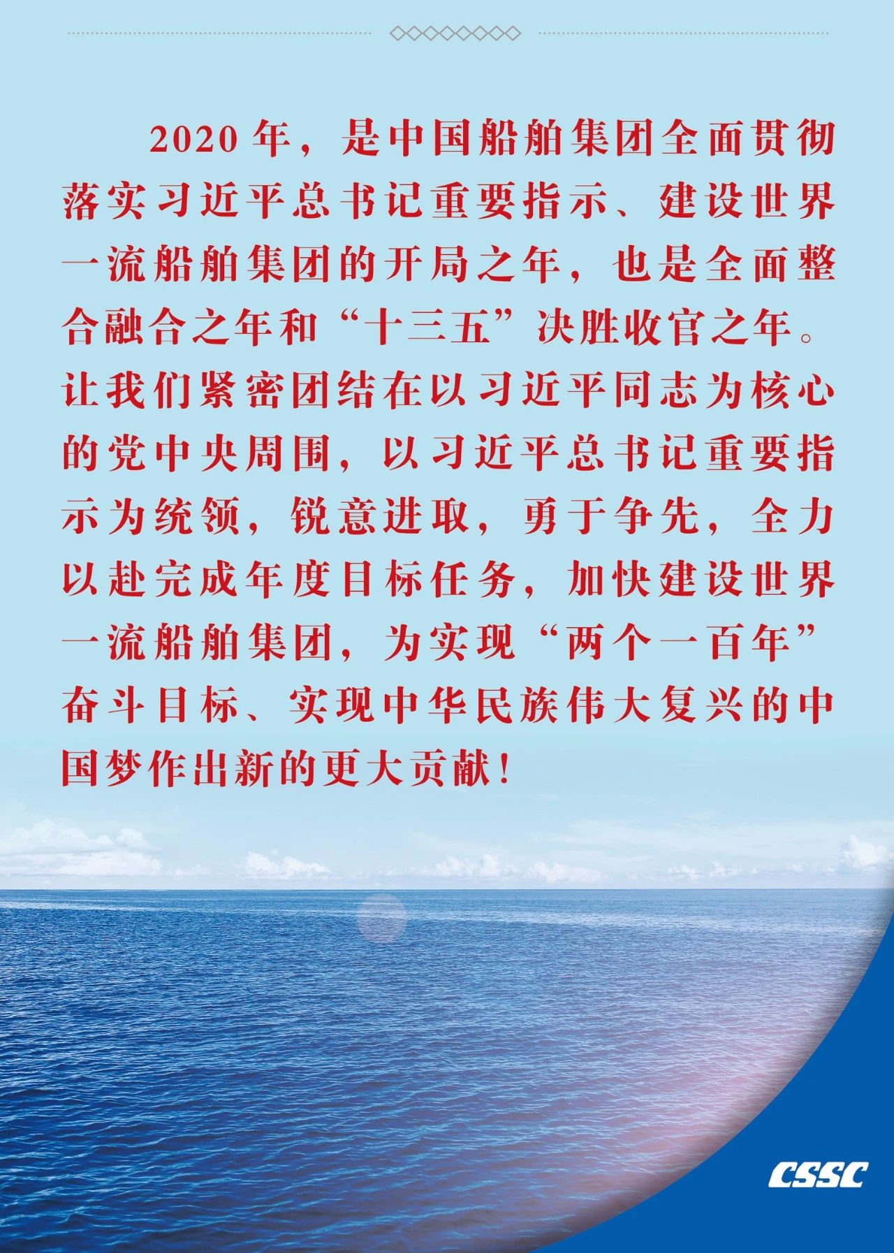 ??1月19日,在中國船舶集團(tuán)有限公司2020年度工作會議上,中國船舶集團(tuán)黨組書記、董事長雷凡培作了題為《以習(xí)近平總書記重要指示為統(tǒng)領(lǐng) 奮力開啟建設(shè)世界一流船舶集團(tuán)新征程》的工作報告。