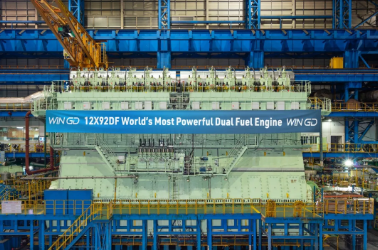今年5月26日,由中國船舶集團(tuán)旗下溫特圖爾發(fā)動(dòng)機(jī)有限公司(WinGD)自主研發(fā)、上海中船三井造船柴油機(jī)有限公司建造、中船海洋動(dòng)力技術(shù)服務(wù)有限公司保障的目前世界最大船用雙燃料低速機(jī)WinGD X92DF正式向全球發(fā)布。作為目前世界最大船用雙燃料低速機(jī),WinGD X92DF集超大功率、智能控制、綠色環(huán)保于一體,以優(yōu)異的性能和排放指標(biāo)引領(lǐng)世界同類型發(fā)動(dòng)機(jī)。該型低速機(jī)在燃?xì)饽J较?,采用奧拓循環(huán)原理,低壓燃?xì)膺M(jìn)氣技術(shù),滿足目前最嚴(yán)苛的IMO Tier III排放標(biāo)準(zhǔn)。