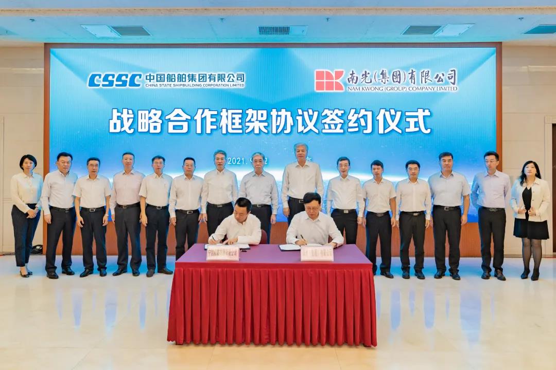 9月22日,中國船舶集團有限公司與南光(集團)有限公司在京簽署戰(zhàn)略合作框架協(xié)議。中國船舶集團黨組書記、董事長雷凡培,南光(集團)董事長傅建國出席簽約儀式。中國船舶集團黨組成員、副總經(jīng)理盛紀(jì)綱,南光(集團)副總經(jīng)理王彤彥分別代表雙方簽約。