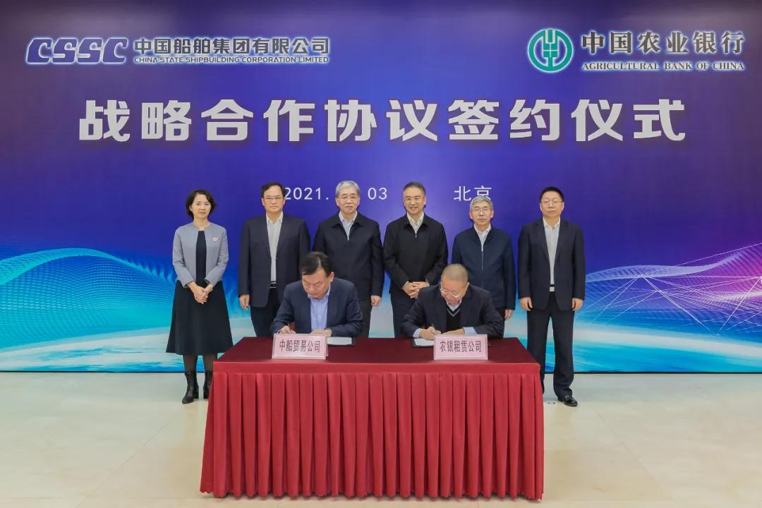 會(huì)上,在雙方領(lǐng)導(dǎo)的共同見證下,中國船舶集團(tuán)旗下中船貿(mào)易與農(nóng)業(yè)銀行農(nóng)銀租賃簽署相關(guān)合作協(xié)議。