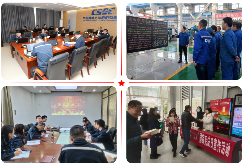 今年12月4日是第八個國家憲法日,11月29日~12月5日是第四個“憲法宣傳周”。中國船舶集團總部和各成員單位以本次國家憲法日和“憲法宣傳周”為契機,深入開展了2021年“法治宣傳周”活動,在集團上下掀起了尊法學(xué)法守法用法的熱潮,營造了濃厚的法治氛圍。