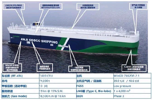 該船的關(guān)鍵性設備系統(tǒng)(WinGD X-DF主機及iCER系統(tǒng)、LNG圍護和供氣系統(tǒng)、滾裝設備系統(tǒng))均采用中國船舶集團旗下公司或科研院所產(chǎn)品,顯著提升了該新造船項目的核心設備國產(chǎn)自主化率,在我國大型滾裝船型建造史上具有里程碑意義,建成交付后將成為中國最大、世界領(lǐng)先、國產(chǎn)化程度最高的遠洋汽車運輸船,能夠積極滿足上汽集團以及國內(nèi)其它自主、外資品牌不斷增長的出口業(yè)務需求,也將加快推動高含金量“中國智造”走向全球。