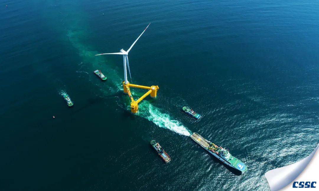 中國海裝建造的國內(nèi)首臺(tái)深遠(yuǎn)海浮式風(fēng)電裝備——“扶搖號(hào)”從廣東茂名廣港碼頭正式起航。