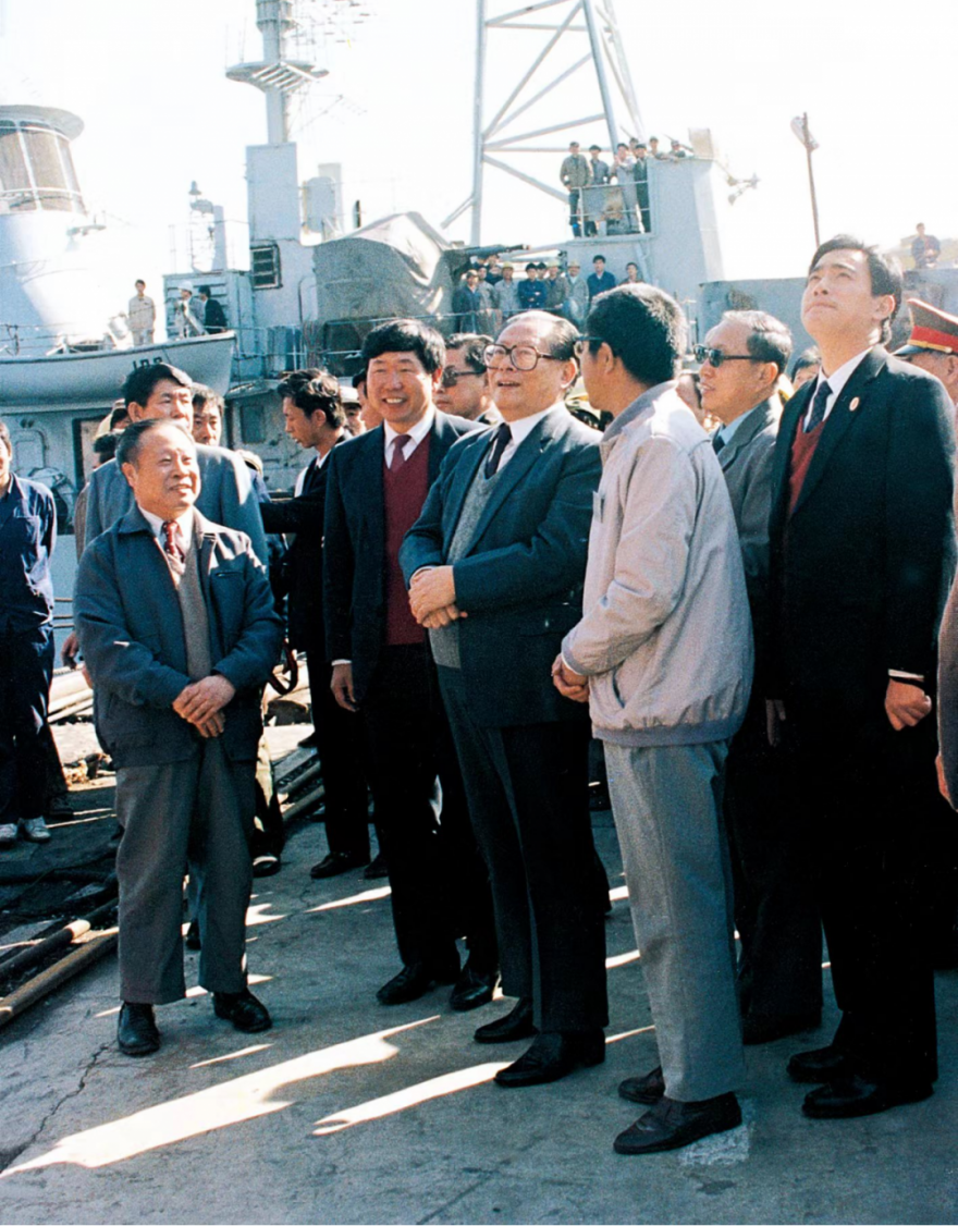 江澤民同志曾先后三次到江南造船視察。圖為1994年4月29日,江澤民同志視察江南造船。據(jù)相關(guān)人士回憶,當(dāng)時(shí)江澤民同志視察江南有兩個(gè)原因,一是“五一”節(jié)快要到了,江澤民同志要看望工人階級(jí),就選擇了江南造船,因?yàn)榻显齑钱a(chǎn)業(yè)工人的搖籃;第二個(gè)原因是112艦計(jì)劃當(dāng)年5月8日前交艦,交艦前江澤民同志要先視察。