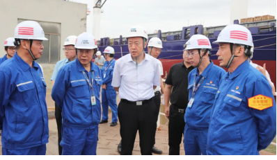 6月8日下午、9日上午,在龍穴基地調(diào)研期間,溫剛走進造修船生產(chǎn)現(xiàn)場,登上多型重點在建船舶,察看車間、船塢、船臺等生產(chǎn)區(qū)域,與企業(yè)班子成員深入交流,聽取了黃埔文沖、廣船國際產(chǎn)業(yè)發(fā)展、深化改革、科技創(chuàng)新、人才隊伍建設、精益管理、黨的建設等有關情況的匯報。