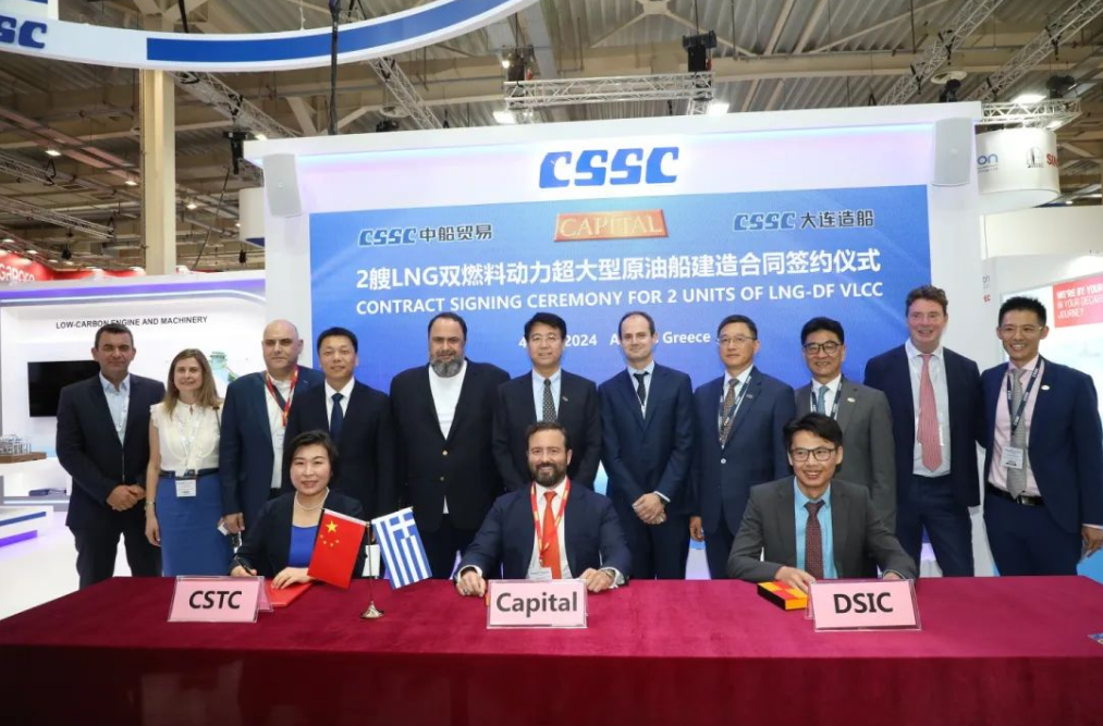 展會期間促成集團公司多家成員單位船海項目成功簽約,共計超50億元人民幣,包括中船貿(mào)易、廣船國際與EPS公司4艘11萬噸LRII型LNG雙燃料油輪項目簽約、與ASP公司2艘5萬噸MR甲醇雙燃料油輪項目簽約,中船貿(mào)易、大連造船與CAPITAL公司2艘30萬噸VLCC建造項目簽約,另外還簽訂了40多億元新造船項目意向書;同時,參展成員單位在集團公司展臺上開展了豐富的推介活動,包括江南造船“綠色船型家族”產(chǎn)品推介會、中船系統(tǒng)院“羅經(jīng)進入光纖時代”產(chǎn)品推介會、七一一所“全球首個全流程船用碳捕捉系統(tǒng)案例分享會”,吸引了眾多國際船東、船級社和設備廠商前來觀摩,并共同探討未來合作機遇。