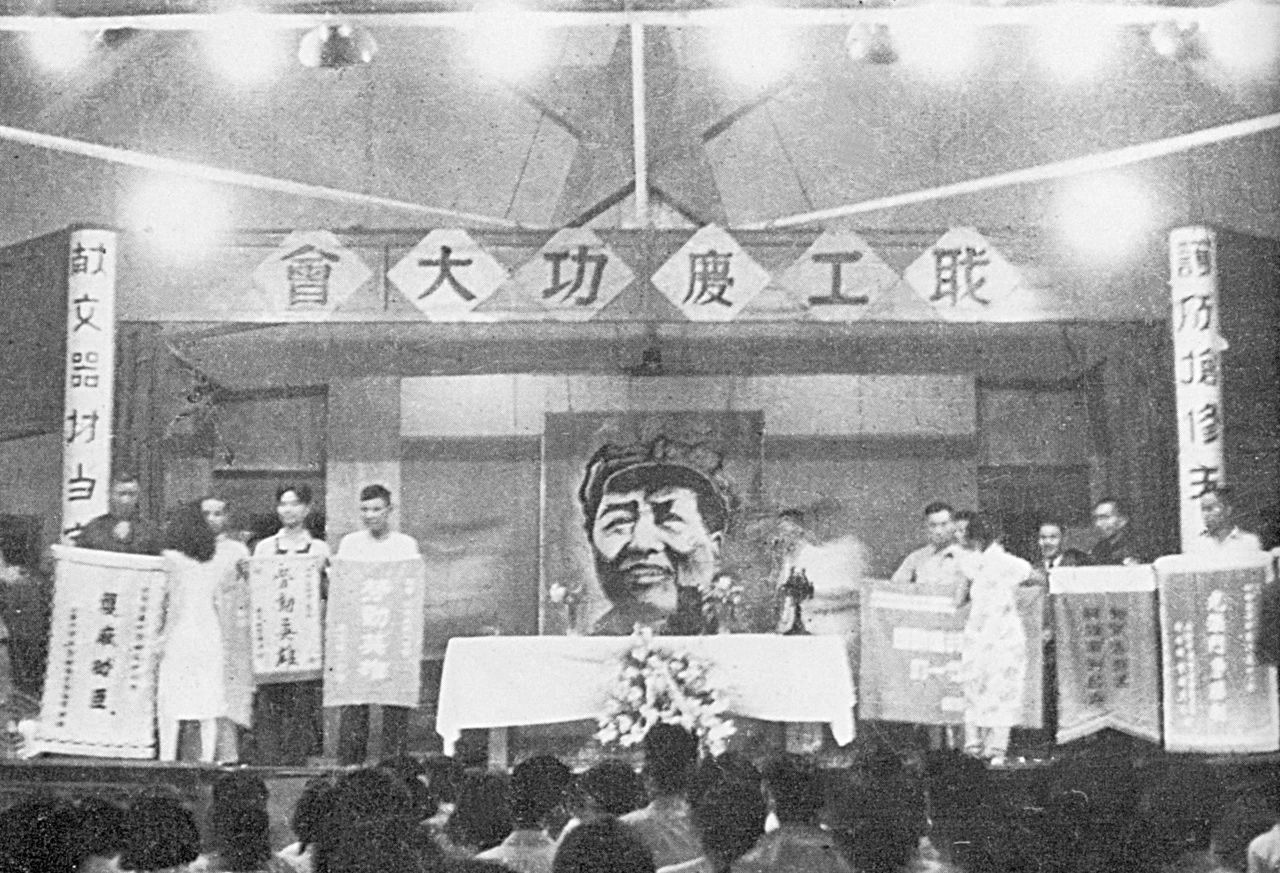 1949年7月上海,1949年7月23日,江南造船所舉行“職工慶功大會”。上海市市長兼軍管會主任陳毅、副市長曾山、華東海軍司令員張愛萍、上海市總工會主席劉長勝等出席了大會。會上總結修復廠房設備的經(jīng)驗,宣布恢復生產(chǎn)表彰有功人員。全所有 134人被評為一、二、三等功臣受到表彰。