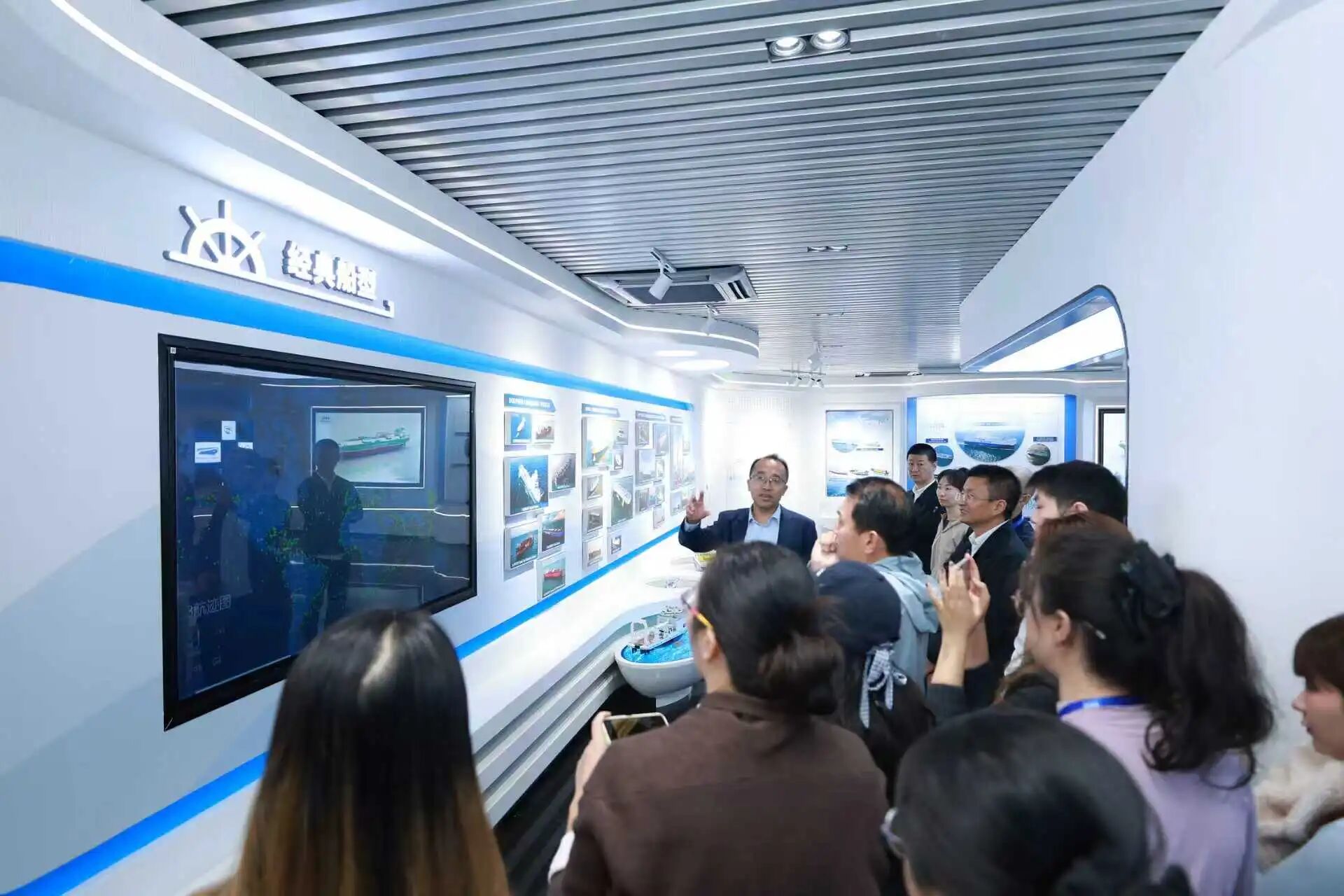 媒體代表團(tuán)先后參觀了上船院展廳及智能船舶實驗室,并聽取了相關(guān)專家對院船型品牌與低碳零碳技術(shù)發(fā)展、數(shù)智賦能船舶研發(fā)設(shè)計等專題的講解,感受著上船院深厚的科技底蘊(yùn)和創(chuàng)新的澎湃動力。