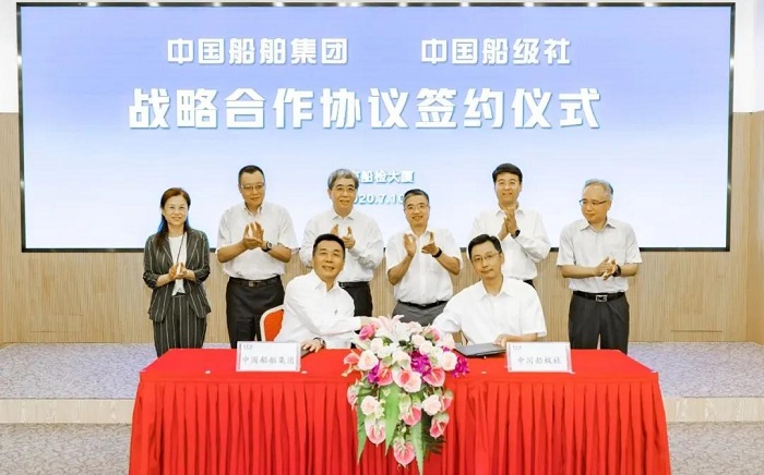 7月10日,中國船舶集團有限公司與中國船級社在京簽訂戰(zhàn)略合作協(xié)議。中國船舶集團黨組書記、董事長雷凡培,黨組成員、副總經(jīng)理杜剛,中國船級社總裁莫鑒輝,副總裁朱愷、范強出席簽約儀式。中國船舶集團黨組成員、副總經(jīng)理孫偉,中國船級社副總裁孫峰分別代表雙方在協(xié)議上簽字。簽約后,雙方圍繞共同服務國家戰(zhàn)略,就進一步加強交流合作、促進優(yōu)勢互補、實現(xiàn)共贏發(fā)展進行了深入交流。