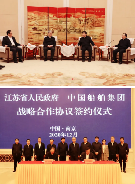 12月21日,中國船舶集團(tuán)有限公司與江蘇省人民政府在南京簽署戰(zhàn)略合作協(xié)議。中國船舶集團(tuán)黨組書記、董事長雷凡培,黨組副書記、總經(jīng)理楊金成,黨組成員、副總經(jīng)理錢建平、杜剛,江蘇省委書記、省人大常委會主任婁勤儉,省委副書記、省長吳政隆,省委常委、省委秘書長郭元強(qiáng),副省長馬秋林,省政府秘書長陳建剛等領(lǐng)導(dǎo)出席簽約儀式。楊金成、馬秋林分別代表雙方在協(xié)議上簽字。簽約前,雙方圍繞共同服務(wù)國家戰(zhàn)略,就進(jìn)一步加強(qiáng)交流合作、實現(xiàn)共同發(fā)展進(jìn)行深入交流并達(dá)成共識。