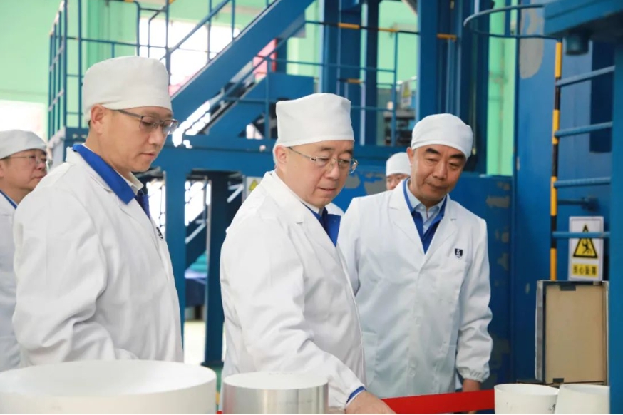 王國強深入生產科研一線,調研了相關裝備園區(qū)、車間和重點產品,與全國技術能手、一線工人就工裝應用、工藝工法、安全生產等進行親切交流,聽取了企業(yè)負責人關于生產經營、科技創(chuàng)新、人才培養(yǎng)、精益管理、發(fā)展規(guī)劃、黨的建設等方面情況匯報,并對下一步工作提出具體要求。