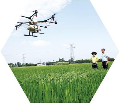 無(wú)人植保機(jī)在眉山市東坡區(qū)鎮(zhèn)南村噴灑農(nóng)藥。張忠蘋攝