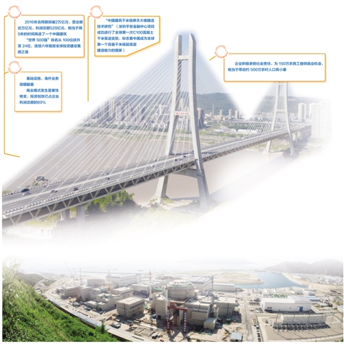 黨的十八大以來(lái)的5年,中國(guó)建筑連續(xù)5次獲得國(guó)務(wù)院國(guó)資委中央企業(yè)負(fù)責(zé)人經(jīng)營(yíng)業(yè)績(jī)考核A級(jí),任期考核蟬聯(lián)“業(yè)績(jī)優(yōu)秀企業(yè)”榮譽(yù)稱號(hào);5年來(lái),中國(guó)建筑在財(cái)富“世界500強(qiáng)”排名從100位躍升至24位;5年來(lái),中國(guó)建筑連續(xù)穩(wěn)居全球投資建設(shè)集團(tuán)之首,獲得標(biāo)普、穆迪、惠譽(yù)等國(guó)際三大評(píng)級(jí)機(jī)構(gòu)信用評(píng)級(jí)A級(jí),為全球建筑行業(yè)最高信用評(píng)級(jí)。自1982年組建以來(lái),中國(guó)建筑實(shí)現(xiàn)“每10年多環(huán)比增長(zhǎng)10倍”的快速發(fā)展目標(biāo)。2016年,中國(guó)建筑合同額突破2萬(wàn)億、營(yíng)業(yè)額近萬(wàn)億、利潤(rùn)總額520億,營(yíng)業(yè)收入、利潤(rùn)總額分別位居國(guó)務(wù)院國(guó)資委管理的中央企業(yè)第4位、第5位,相當(dāng)于用5年的時(shí)間再造了一個(gè)中國(guó)建筑。