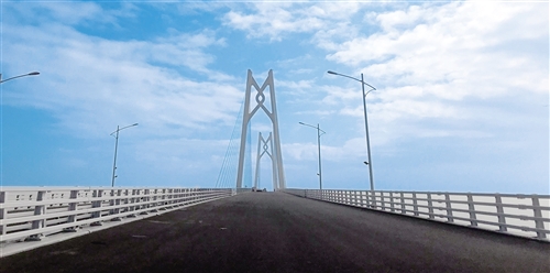 港珠澳大橋主體工程包含22.9公里主體跨海橋梁及6.7公里的沉管隧道。當(dāng)記者坐上汽車,從珠海洪灣這端駛上大橋,感受到的是雙向六車道的平坦通暢。這座前后都望不到頭的大橋上,建有3段斜拉橋,分別是“風(fēng)帆”“海豚”“中國結(jié)”造型,寓意深遠(yuǎn)。