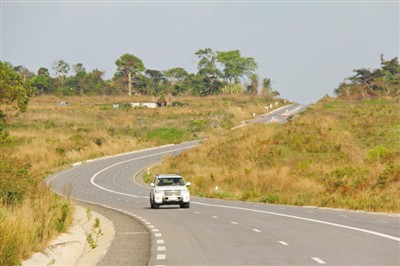 驅(qū)車駛出布拉柴維爾,剛果盆地遼闊的草原便映入眼簾。汽車很快駛上寬闊平坦的雙向四車道公路,這便是剛果(布)國(guó)家一號(hào)公路。