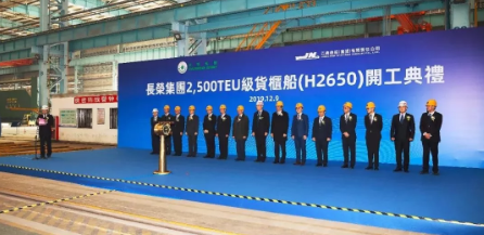 ????中國(guó)船舶集團(tuán)所屬江南造船(集團(tuán))有限責(zé)任公司的2500TEU集裝箱船項(xiàng)目是長(zhǎng)榮海運(yùn)首次在中國(guó)內(nèi)地訂造新船。該系列船入NK船級(jí)社,采用中國(guó)船舶集團(tuán)所屬上海船舶研究設(shè)計(jì)院最新優(yōu)化設(shè)計(jì),加裝最新的Scrubber脫硫裝置。該船總長(zhǎng)195.00米,垂線(xiàn)間長(zhǎng)191.80米,型寬32.25米,型深17.00米,設(shè)計(jì)吃水10.00米,結(jié)構(gòu)吃水11.20米,設(shè)計(jì)航速不低于20節(jié)(NCR),貨艙內(nèi)集裝箱數(shù)922箱,甲板上集裝箱數(shù)1725 箱,甲板上冷箱數(shù)226箱。該船計(jì)劃于2021年交付。
