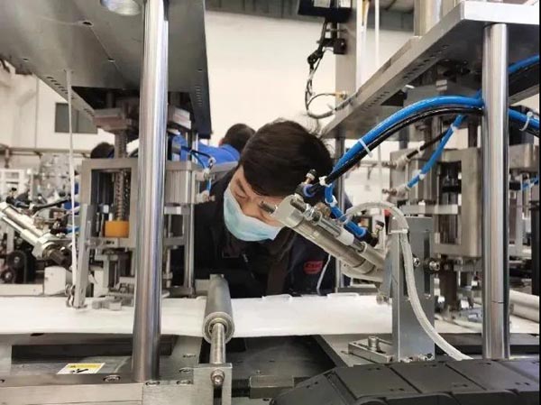 ????就在幾天前,鵬力智造已交付首批口罩機(jī)及防護(hù)服壓條機(jī)。此次交付的N95口罩機(jī)由鼻梁焊接機(jī)、打片機(jī)、耳帶焊接機(jī)三部分構(gòu)成,可生產(chǎn)多種類(lèi)型折疊口罩,單臺(tái)設(shè)備每分鐘最高生產(chǎn)60只口罩。
