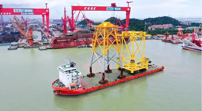 日前,由中國船舶集團旗下廣船國際承建的廣東陽江南鵬島300兆瓦海上風電項目首套導管架及輔助平臺順利交運。這是廣船國際承建并交運的首批首個風電導管架,也是目前國內最大的風電導管架,標志著廣船國際在風電業(yè)務領域實現(xiàn)了經(jīng)營、生產(chǎn)、交付全環(huán)節(jié)突破,對后續(xù)承接風電項目業(yè)務、拓展風電市場具有重要意義。