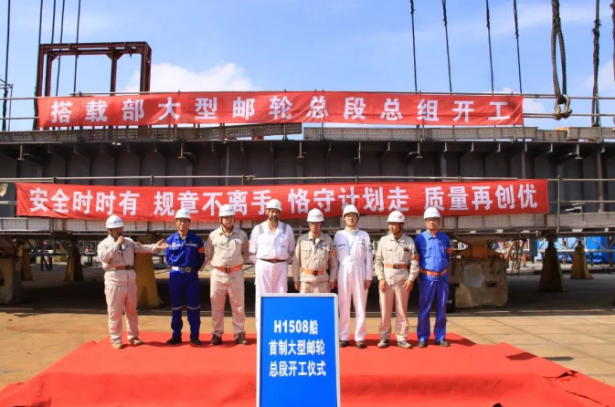 8月21日,中國船舶集團旗下外高橋造船建造的我國首艘國產大型郵輪H1508項目總段總組正式開工建造。