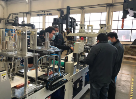 作為生產(chǎn)供貨單位,為了以最快速度擴(kuò)大產(chǎn)能,八院鵬力科技集團(tuán)黨支部組織成立“黨員突擊隊(duì)”,24小時(shí)無間歇輪班工作,帶頭加班加點(diǎn)投入專項(xiàng)任務(wù)研制生產(chǎn)。八院鵬力科技集團(tuán)僅用11天就完成N95口罩機(jī)、平面口罩機(jī)和壓條機(jī)樣機(jī)研制,僅15天就實(shí)現(xiàn)了量產(chǎn)設(shè)備的連續(xù)供貨。科研團(tuán)隊(duì)正確處理抓質(zhì)量、促進(jìn)度的關(guān)系,按照軍工產(chǎn)品質(zhì)量要求,確保交付產(chǎn)品質(zhì)量過硬。