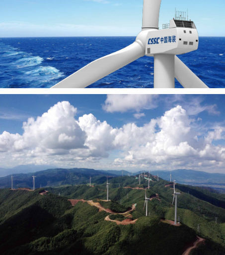 中國船舶集團擁有國內(nèi)實力強勁的自主研發(fā)與生產(chǎn)體系,具備強大的機、電、液、控一體化裝備制造服務保障能力,形成了從葉片、齒輪箱、發(fā)電機、控制系統(tǒng)到機座、機架、塔筒、輪轂等全系列制造能力,從資源開發(fā)、零部件制造、整機研發(fā)、工程安裝、運維服務等全產(chǎn)業(yè)鏈保障能力,是我國唯一具備較完整風電裝備研制生產(chǎn)服務保障體系的專業(yè)化集團。