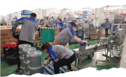 ▲熱火朝天忙生產(chǎn),第三研究室汽車(chē)防凍液生產(chǎn)車(chē)間各條生產(chǎn)線安全有序生產(chǎn),呈現(xiàn)一片繁忙景象。圖為工作人員按照操作規(guī)程有序生產(chǎn)汽車(chē)防凍液產(chǎn)品。