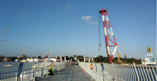 日前,中國船舶集團旗下中船應(yīng)急承建的肯尼亞蒙巴薩人行浮橋正式建成通行。蒙巴薩作為肯尼亞第二大城市,是全國重要工商業(yè)中心,其港口為非洲東海岸最大海港。浮橋的建成,使蒙巴薩主島和周邊地區(qū)兩岸居民通行時間由原來的45分鐘縮短至10分鐘,極大方便了當?shù)鼐用癯鲂?。同時,浮橋通航孔的設(shè)計可滿足萬噸大型船舶暢通進出蒙巴薩港口。