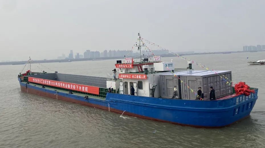 “船聯(lián)1號”由國網江蘇省電力有限公司聯(lián)合相關部門和企業(yè)共同打造,是長江流域最大載重噸位的電動貨船,將電能作為整艘船的唯一能源,實現(xiàn)零排放、低噪音、無污染。