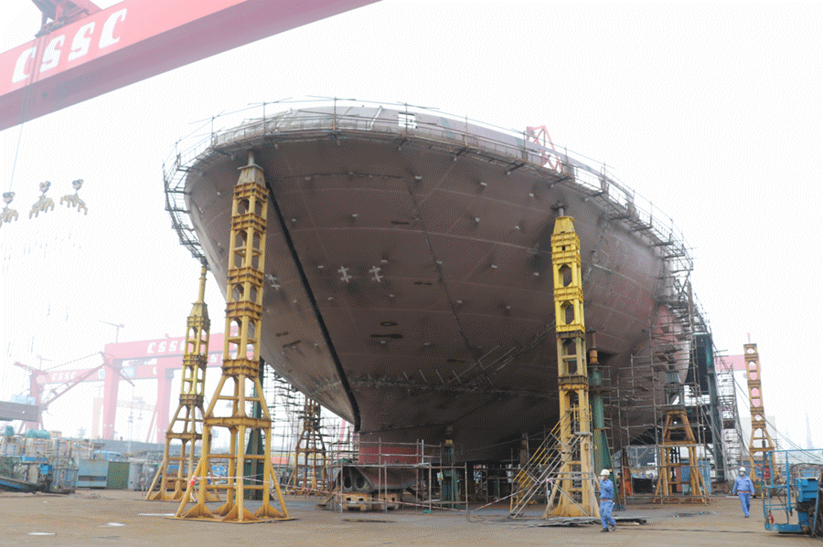 廣船國(guó)際總裝部集中精銳力量,與船東、船檢密切配合,克服了疫情影響,實(shí)現(xiàn)了艏部總段的快速成型,為艏門(mén)開(kāi)啟提供了條件。