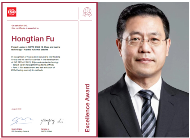 ISO卓越貢獻(xiàn)獎旨在表彰在上一年度ISO國際標(biāo)準(zhǔn)制修訂工作中作出突出貢獻(xiàn)的專家、項(xiàng)目負(fù)責(zé)人或工作組召集人。此次頒獎表彰了付洪田在ISO 23314-2:2021《船舶與海洋技術(shù)—壓載水管理系統(tǒng)—電解法壓載水管理系統(tǒng)的風(fēng)險(xiǎn)評估與風(fēng)險(xiǎn)降低》國際標(biāo)準(zhǔn)研制作出的貢獻(xiàn)。