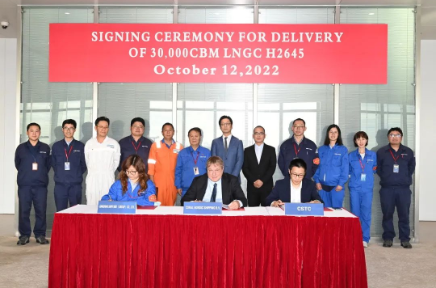 10月12日,中國船舶集團(tuán)旗下江南造船為荷蘭船東Anthony Veder公司設(shè)計、建造的30000立方米液化天然氣(LNG)運輸船“Coral Nordic”號在上海簽字交付。
