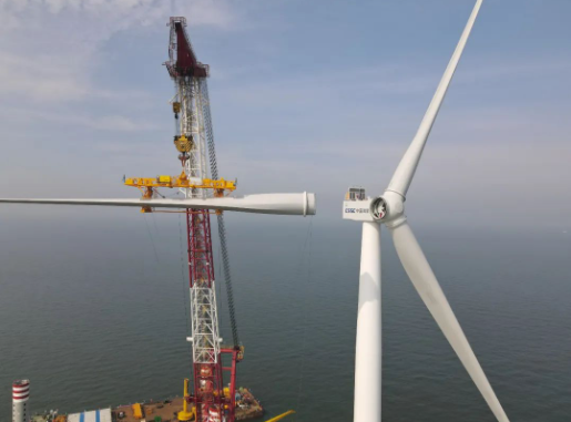 中船海裝機(jī)組在山東能源渤中海上風(fēng)電A場址項(xiàng)目進(jìn)行吊裝