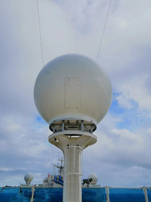 站在煙囪下面往船艏方向看,正對著1個大球,前前后后,愛達·魔都號的頂部共有5個同款大球,它們分別用于收發(fā)來自衛(wèi)星的電視和網絡信號,船上“5G+WIFI”網絡系統(tǒng)和艙室的IPTV就是在它們的加持下才得以實現。