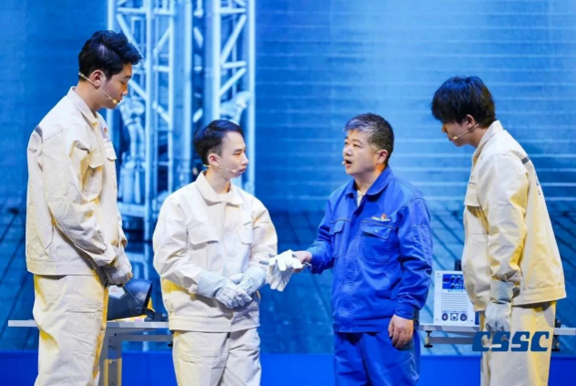 現(xiàn)場,來自中國船船集團江南造船(集團)有限責(zé)任公司、滬東中華造船(集團)有限公司、上海外高橋造船有限公司、中船動力(集團)有限公司和中國船舶集團公司第七〇二研究所的青年職工將真實工作案例與理論原文結(jié)合,將“發(fā)展新質(zhì)生產(chǎn)力”作為工作方向與指引,將他們的造船故事親身演繹。故事從《船舶青年說》起航,共講述了五大篇章,分別為江南造船如何延續(xù)百年初心、滬東中華造船LNG船毫厘鑄匠心、七〇二所從“蛟龍”號到“奮斗者”號將深潛進行到底、外高橋造船“愛達?魔都號”大型郵輪“4個120天”的極限挑戰(zhàn)、江南造船“鋼鐵心臟”工程師攻克大型作戰(zhàn)艦建造的不凡創(chuàng)新路,臺詞鏗鏘有力、情感真摯流淌,繪就了一幅精彩的中國船舶夢畫卷。