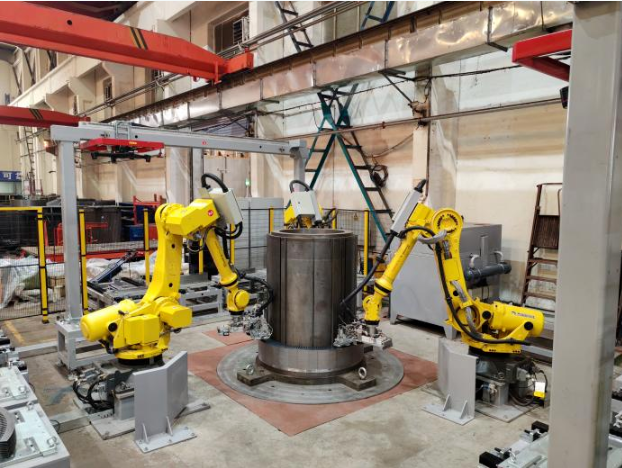 近日,中國船舶集團(tuán)旗下杰瑞自動化承研的定子鐵芯疊裝機(jī)器人工作站項(xiàng)目通過驗(yàn)收并投入使用,實(shí)現(xiàn)了大型高壓異步電機(jī)關(guān)鍵配套——定子鐵芯的自動化生產(chǎn)。