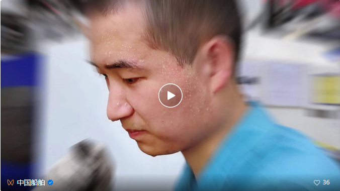 中船發(fā)動機(jī)——調(diào)試人員頂著高溫在認(rèn)真安裝傳感器,汗水濕透了衣裳。