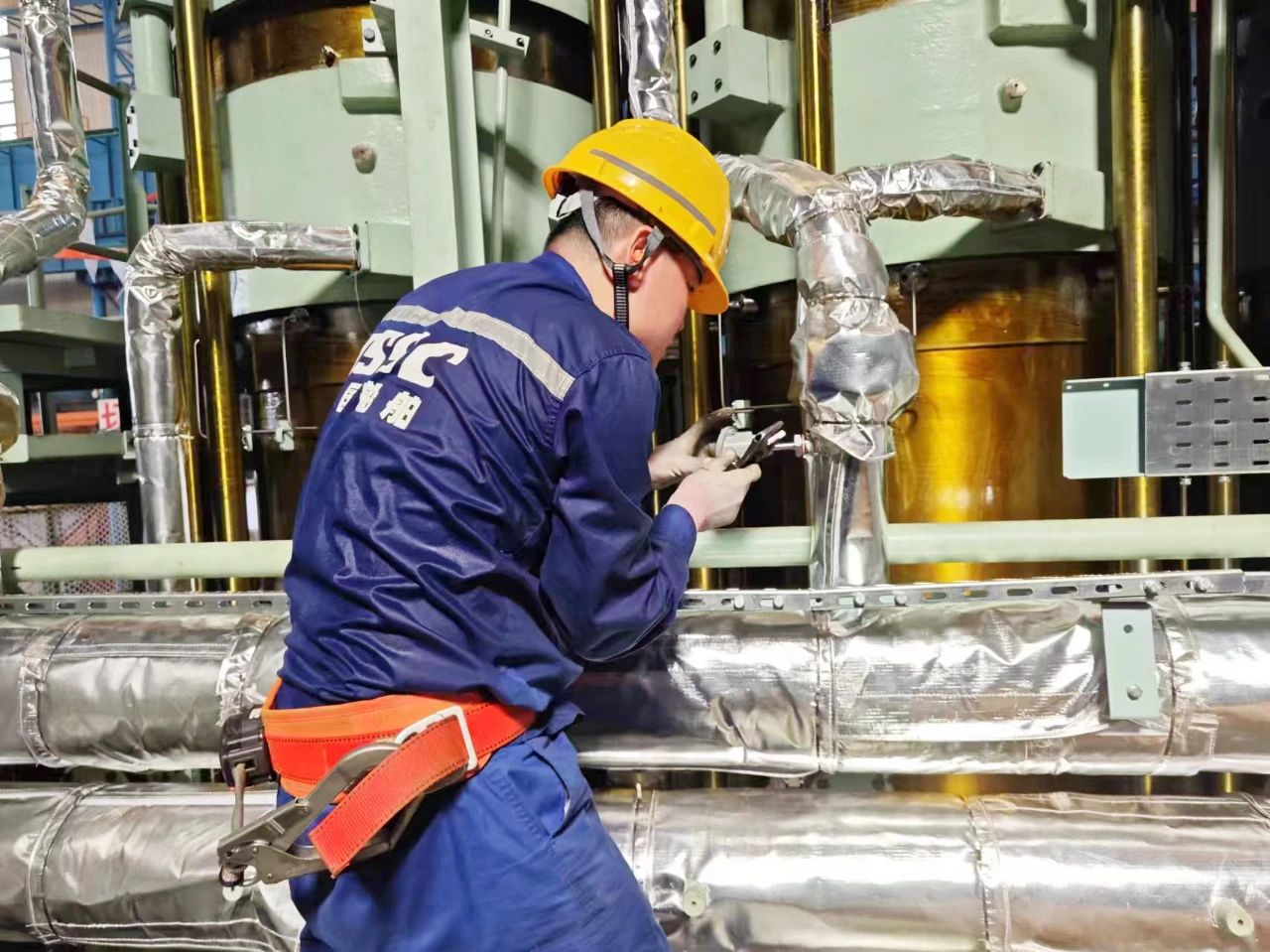 七二五所——雙瑞精鑄鈦板帶車間的師傅們正頂著酷暑進(jìn)行修復(fù)裝配面工作。