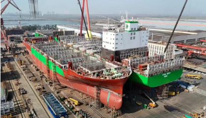 黃埔文沖切實增強自主開發(fā)能力,堅持聚焦主建船型,持續(xù)推廣自主開發(fā)的“鴻鵠”集裝箱船和“海鯨”散貨船系列,成功打造1900TEU集裝箱船、3000TEU集裝箱船、2400TEU甲醇雙燃料集裝箱船和85000噸散貨船等明星船型,形成品牌迭代升級和譜系化;緊抓船舶行業(yè)綠色新能源的機遇,黃埔文沖以市場需求為導向,承接了多艘以甲醇、氨燃料等綠色能源為動力的集裝箱船和散貨船訂單。