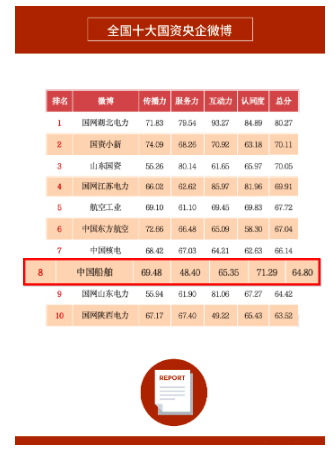 另外,日前2024上半年度政務(wù)微博影響力報告正式公布,@中國船舶獲評“全國十大國資央企微博”。@中國船舶通過創(chuàng)新傳播形式,讓權(quán)威性信息觸達(dá)民眾,提供高效高質(zhì)的資訊和服務(wù),為助力集團(tuán)公司高質(zhì)量發(fā)展注入動能。