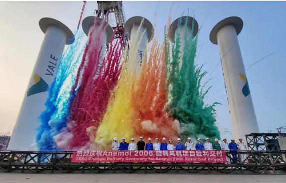 日前,中國船舶集團(tuán)旗下中船澄西為Anemoi Marine Technologies公司建造的最新型5套35米折疊式船用轉(zhuǎn)子帆順利交付發(fā)運(yùn)。據(jù)悉,該項(xiàng)目轉(zhuǎn)子帆將安裝在全球最大礦砂船——40萬噸級Valemax型“Sohar Max”號上,屆時將組成目前全球最大的風(fēng)力轉(zhuǎn)子推進(jìn)系統(tǒng),標(biāo)志著中船澄西在深耕綠色船舶節(jié)能減排、攻堅(jiān)轉(zhuǎn)子帆建造領(lǐng)域再次取得重大突破。