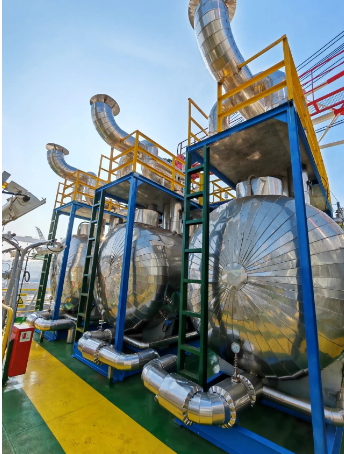 今年5月,七〇四所項(xiàng)目團(tuán)隊(duì)陸續(xù)完成了除氧撬塊、超濾撬塊、反滲透撬塊、換熱撬塊等設(shè)備的研制交付,隨即轉(zhuǎn)入現(xiàn)場(chǎng)安裝調(diào)試。面對(duì)設(shè)備安裝和海上試航中遇到的問(wèn)題,團(tuán)隊(duì)成員群策群力、攻堅(jiān)克難,展現(xiàn)了專(zhuān)業(yè)、職業(yè)和敬業(yè)的精神,為“熱采一號(hào)”的成功交付貢獻(xiàn)了中國(guó)船舶人的擔(dān)當(dāng)和力量,獲得了船東的高度贊揚(yáng)。