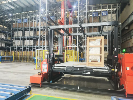 該系統(tǒng)單托盤舉升能力達(dá)到6噸,適用于各類大、重、分布不均、形狀各異物資的立體存儲。采用業(yè)內(nèi)首創(chuàng)的駛?cè)胧阶詣訉?dǎo)向車作為移載動力,通過自主研發(fā)的重型堆垛裝備與智能控制系統(tǒng)聯(lián)動,能夠在復(fù)雜的立體倉庫環(huán)境中準(zhǔn)確定位目標(biāo)并快速平穩(wěn)完成作業(yè)任務(wù)。同時,通過引入現(xiàn)代物聯(lián)網(wǎng)和數(shù)字孿生等先進技術(shù),實現(xiàn)了倉儲物流的智能可視化運營。