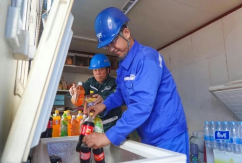 在飲食消暑保障上,大船天津構(gòu)建起全鏈條清涼補給體系。清涼解暑的綠豆湯成為員工餐桌上的“標(biāo)配”,供隨餐飲用;4000余箱瓶裝水以及大批藿香正氣水作為夏季防暑降溫物資配送至各部門、各協(xié)作單位班組;作業(yè)現(xiàn)場的冰柜里,清涼飲品隨時待??;為協(xié)作單位員工送上遮陽草帽,讓清涼關(guān)懷覆蓋每一位一線勞動者。