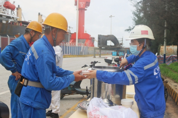 中船廣西開展防暑降溫宣傳活動,柔性調(diào)整生產(chǎn)部門上班時間;改善防暑設施設備,精心改造60個班組舊式集裝箱,臨時租賃15臺風冷機投入到露天作業(yè)現(xiàn)場,為員工撐起高溫下的“保護傘”;每天高溫時段為職工送上消暑的羅漢果茶、菊花茶、綠豆湯等,推動降溫關(guān)懷融入日常。