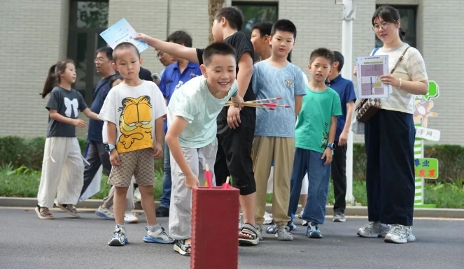 在講解員引導(dǎo)下,家屬們先后走進(jìn)七二五所所部科技展廳與第六研究室,系統(tǒng)了解研究所六十余載發(fā)展歷程、研究領(lǐng)域、前沿技術(shù)攻關(guān)。從國(guó)家科技進(jìn)步獎(jiǎng)獲獎(jiǎng)項(xiàng)目到“大國(guó)重器”關(guān)鍵材料突破,家屬們深刻感受到“艱苦創(chuàng)業(yè)、勇攀高峰”的奮斗者文化傳承。在親子活動(dòng)區(qū),“趣味投壺”“瘋狂九宮格射門(mén)”“百步穿楊”“急速投籃”等4項(xiàng)趣味游戲,瞬間點(diǎn)燃了職工與家屬們的參與熱情,大家紛紛組隊(duì),積極投入到游戲中,通過(guò)趣味互動(dòng),進(jìn)一步加深彼此間的理解與默契,情感也在歡聲笑語(yǔ)中得到了升華。