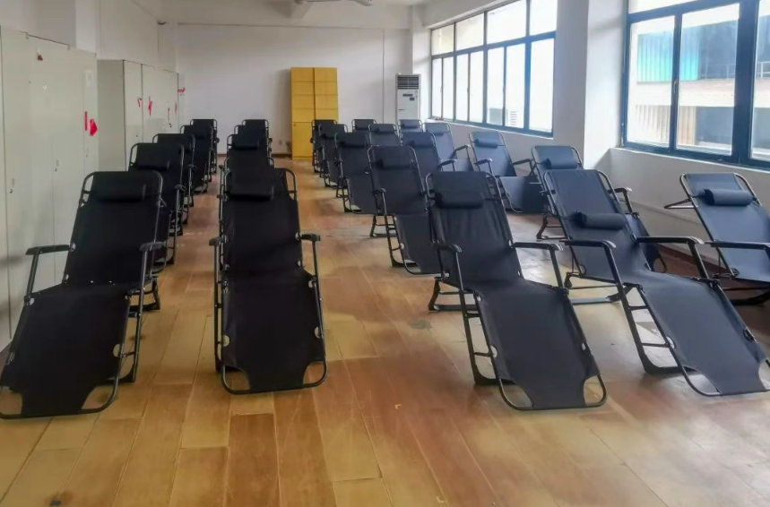 外高橋造船對現(xiàn)有場地資源進(jìn)行優(yōu)化改造,在辦公樓、食堂等17處區(qū)域為員工設(shè)立了休息區(qū)域,為高溫天奮戰(zhàn)在一線的職工提供舒適、充足的納涼空間。休息點設(shè)有空調(diào)、風(fēng)扇等降溫設(shè)備,并根據(jù)各部門使用環(huán)境,配備折疊床、涼席等物資,滿足一線職工高溫休息需求。