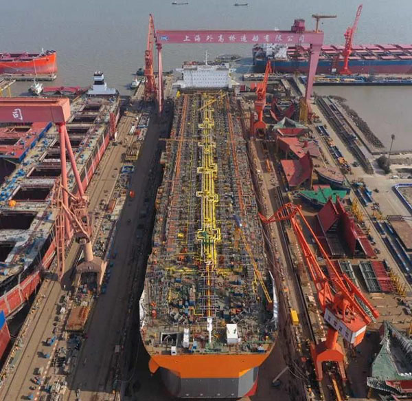 ????3月7日,中國船舶集團所屬外高橋造船建造的一艘海上浮式生產(chǎn)儲油船(FPSO)順利出塢。自2月10日復(fù)工復(fù)產(chǎn)以來,在不到一個月的時間里,外高橋造船已先后完成了一艘11.4萬噸阿芙拉型成品油輪、一艘21萬噸紐卡斯?fàn)栃蜕⒇洿鸵凰?8萬噸好望角型散貨船開工建造,兩艘21萬噸紐卡斯?fàn)栃蜕⒇洿鸵凰?8萬噸好望角型散貨船完成試航,一座JU2000E型海上自升式鉆井平臺交付,一艘平臺供應(yīng)船(PSV)完工簽字,兩艘15.6萬噸蘇伊士型原油輪建造合同簽署等生產(chǎn)節(jié)點。